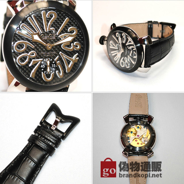 • GaGa MILANO (ガガミラノ) 時計 腕時計 MANUALE マニュアーレ マヌアーレ 48mm ブラック レザー/カーボンブラック/ブラック 5013.01S 501301S 5013.1S 50131S メンズ スイスメイド |ガガミラノ時計スーパーコピー品