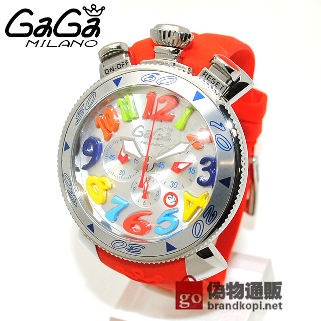 GaGa MILANO (ガガミラノ) 時計 腕時計 クロノ 48mm レッド ラバー/シルバー 60501 RD 6050.1 RD メンズ|ガガミラノ時計スーパーコピー品
