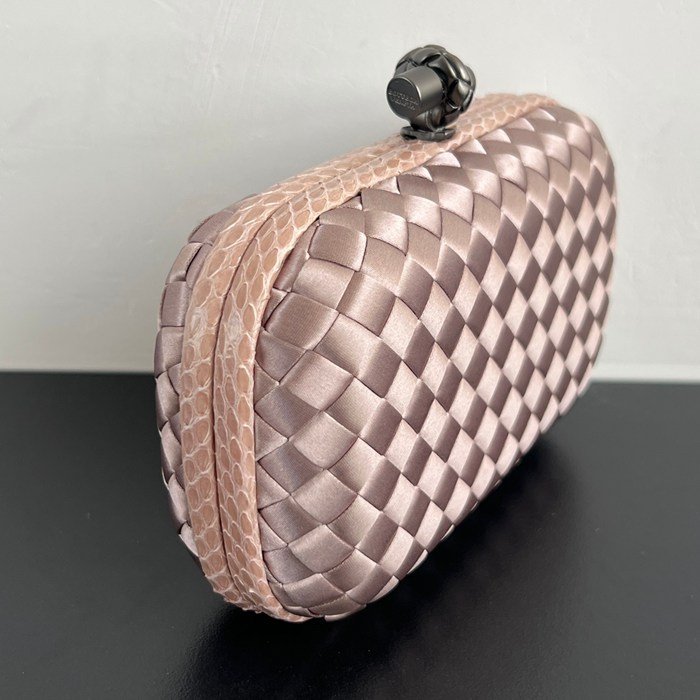 BOTTEGA VENETA ノット シルク編み スネークスキン クラッチ レディース 16×10×5cm