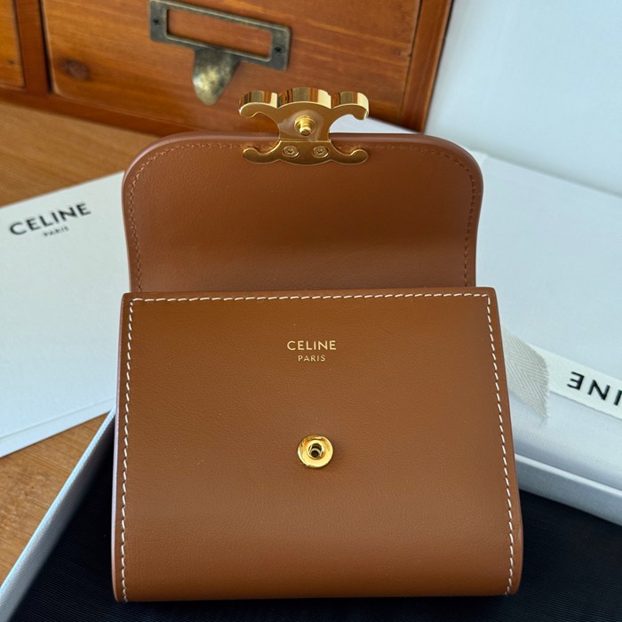CELINE トリオンフ ショートウォレット カーフレザー レディース 10.5×8.5×4cm