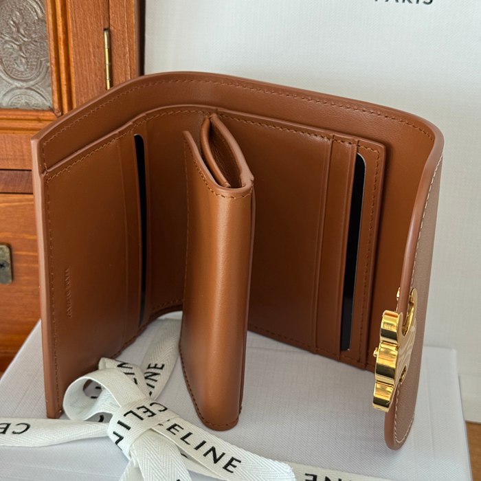 • CELINE トリオンフ ショートウォレット カーフレザー レディース 10.5×8.5×4cm