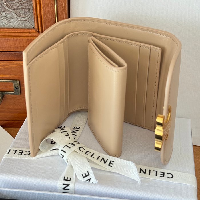 • CELINE トリオンフ ショートウォレット カーフレザー レディース 10.5×8.5×4cm