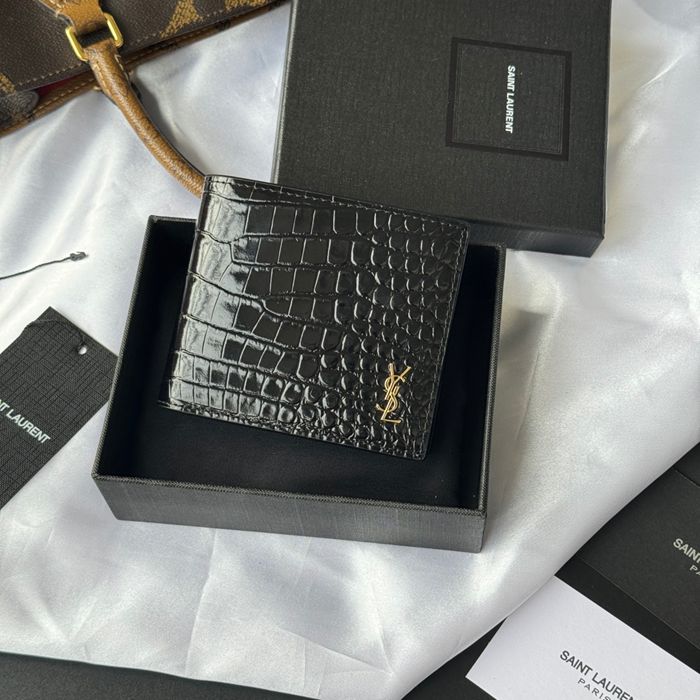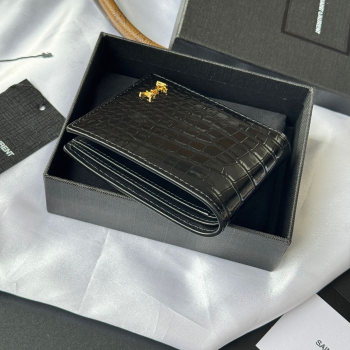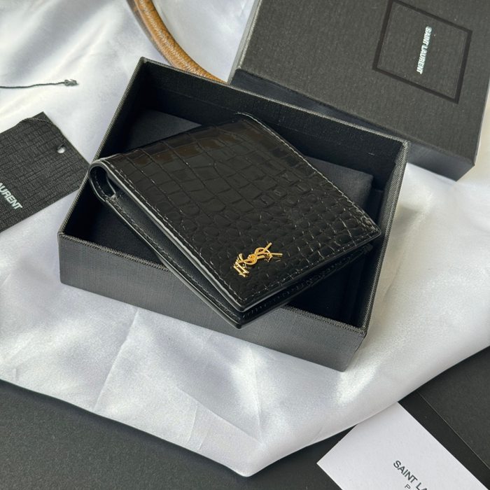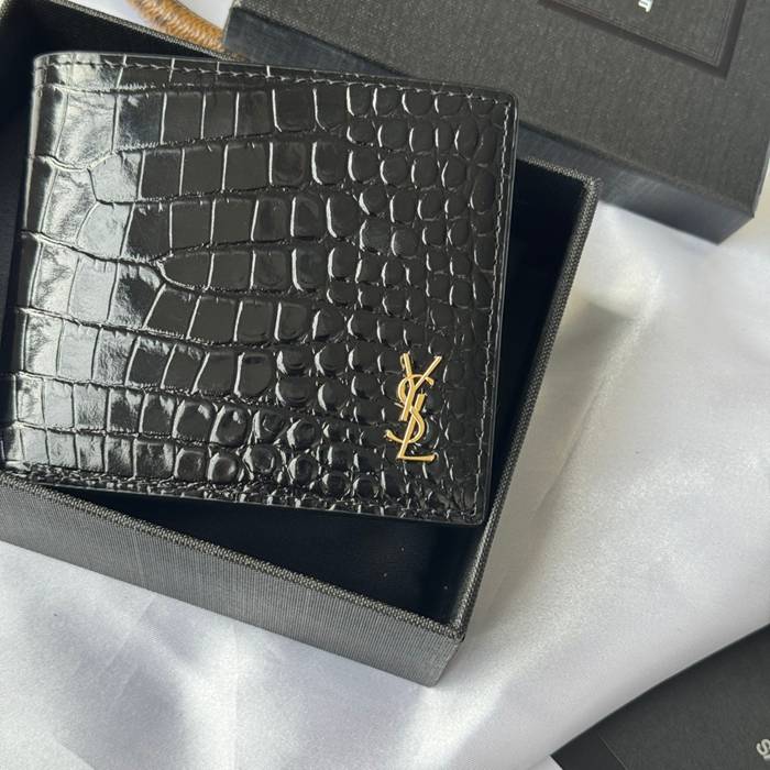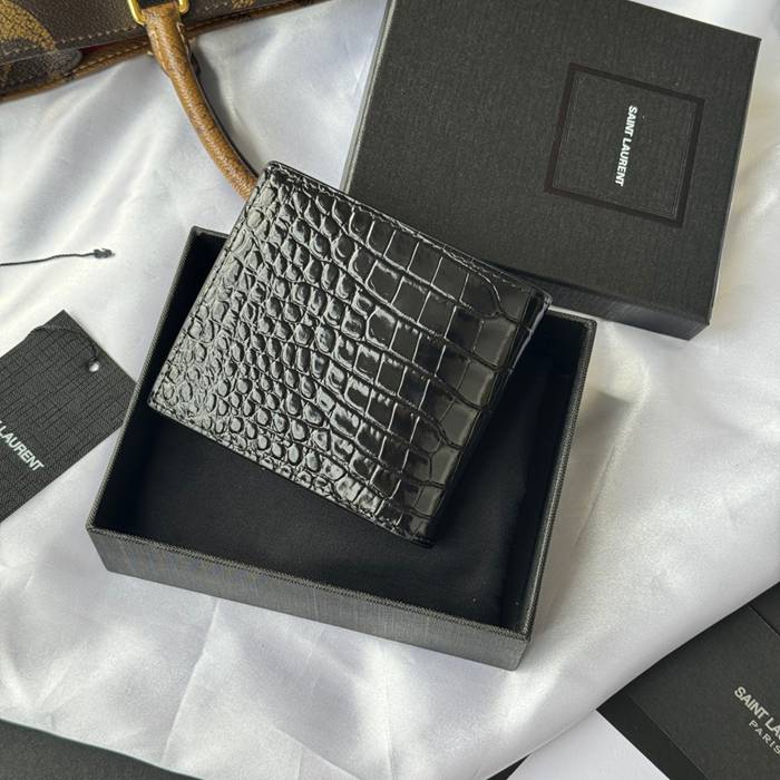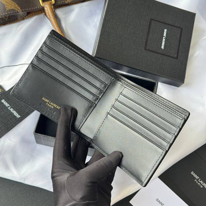 YSL 二つ折り財布 カーフレザー メンズ 11×9.5×2.5cm
