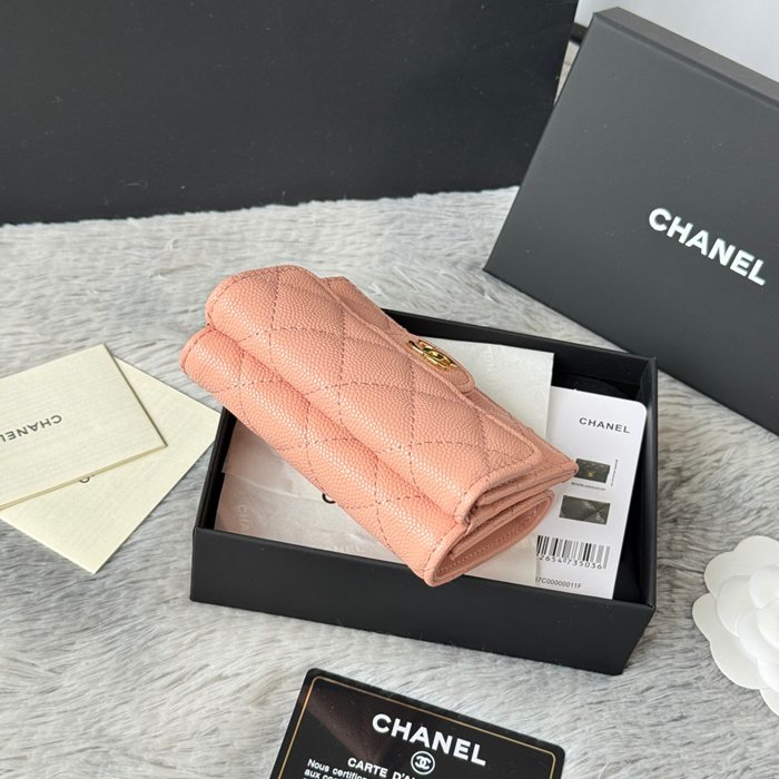 CHANEL 三つ折りカードケース カーフレザー レディース 10.5×7.5×3cm