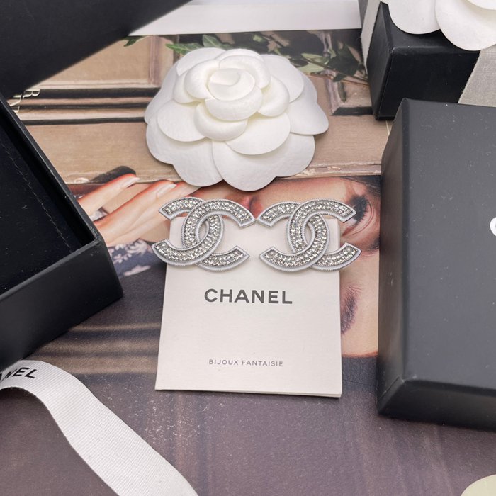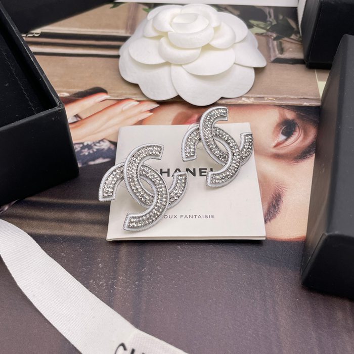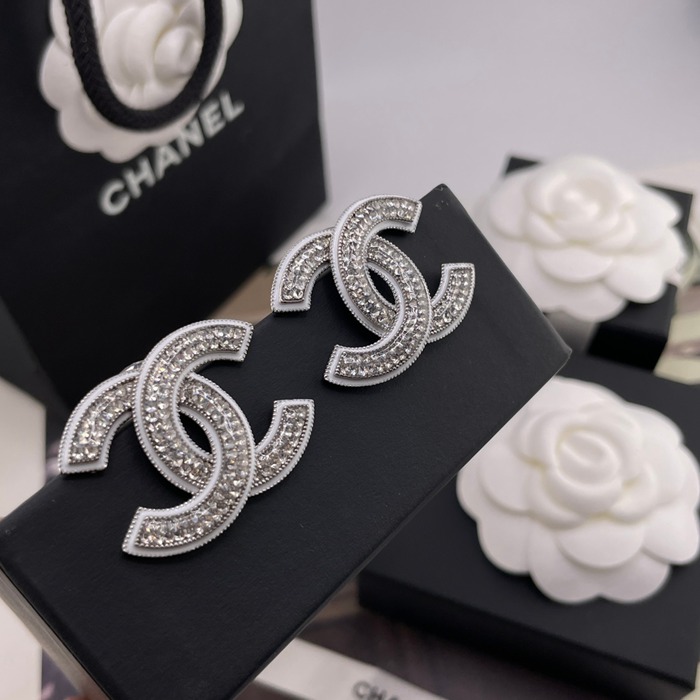 • シャネル スタイル ピアス ホワイト クリスタル