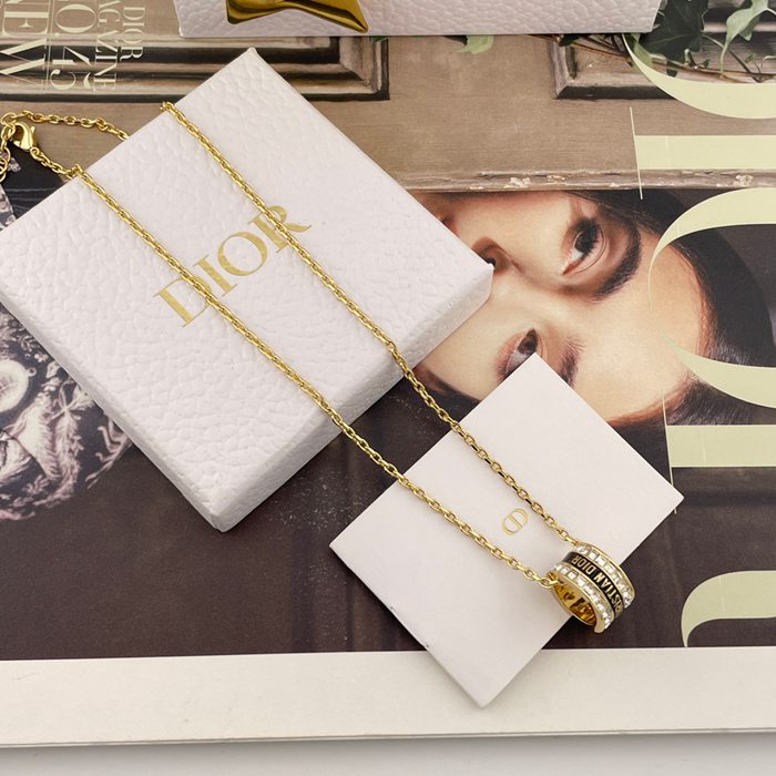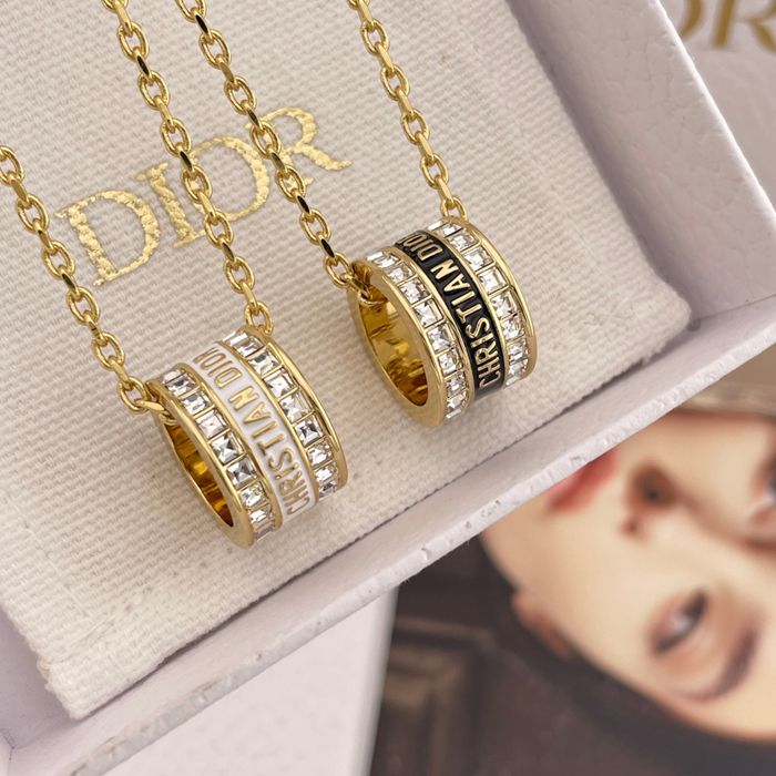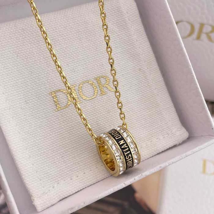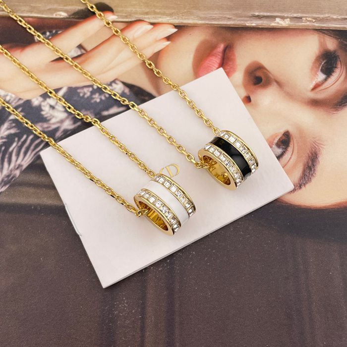ネックレス D スクエアダイヤ×エナメルアルファベットネックレス — ブラック/ホワイト、職人手彫り、クラシックと革新の融合