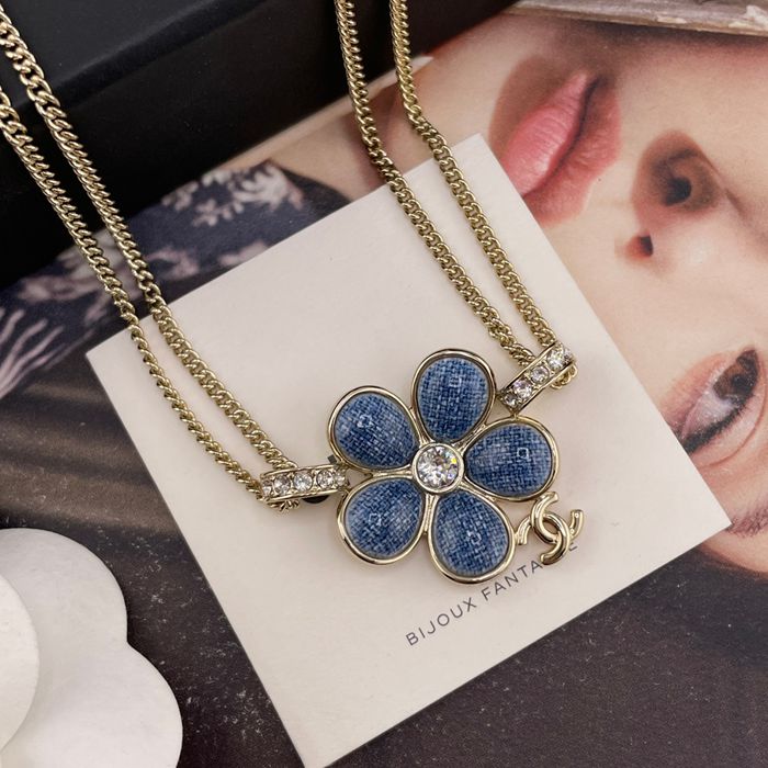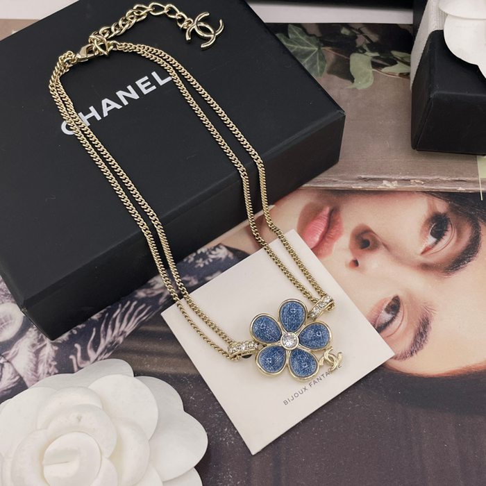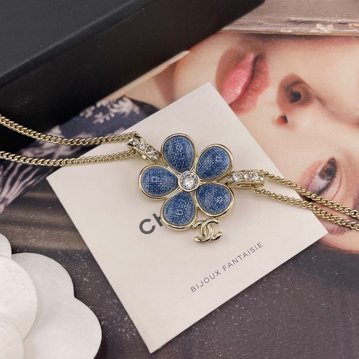 ネックレス C デニム風フラワー×Cペンダントネックレス — 26早春、辛芷蕾着用、デニム風テクスチャー、フラワーモチーフ、滿鑽