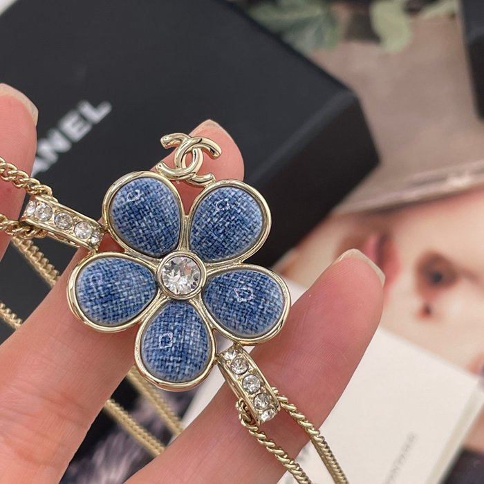 • ネックレス C デニム風フラワー×Cペンダントネックレス — 26早春、辛芷蕾着用、デニム風テクスチャー、フラワーモチーフ、滿鑽