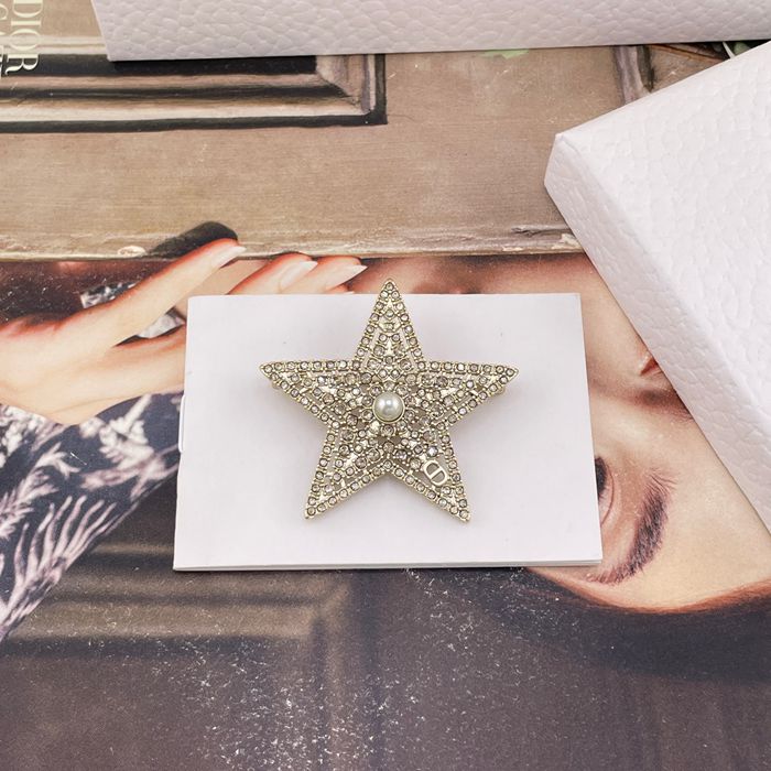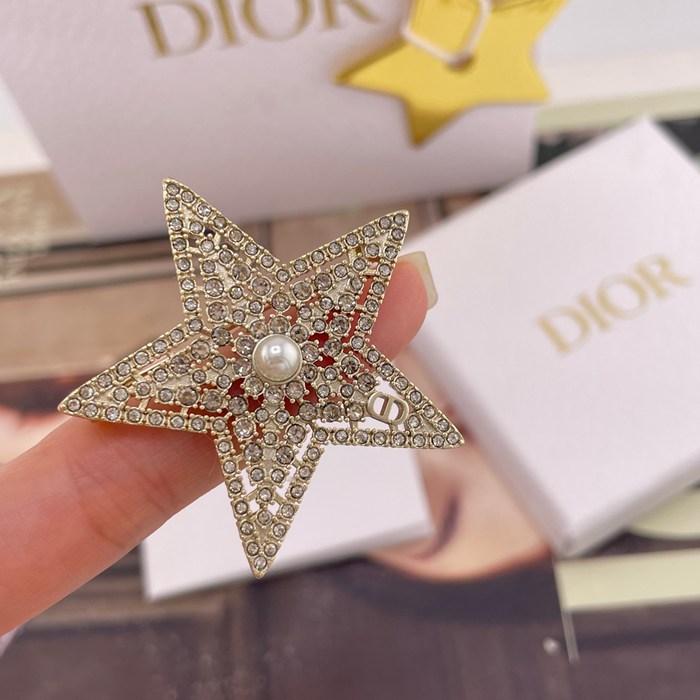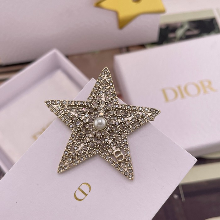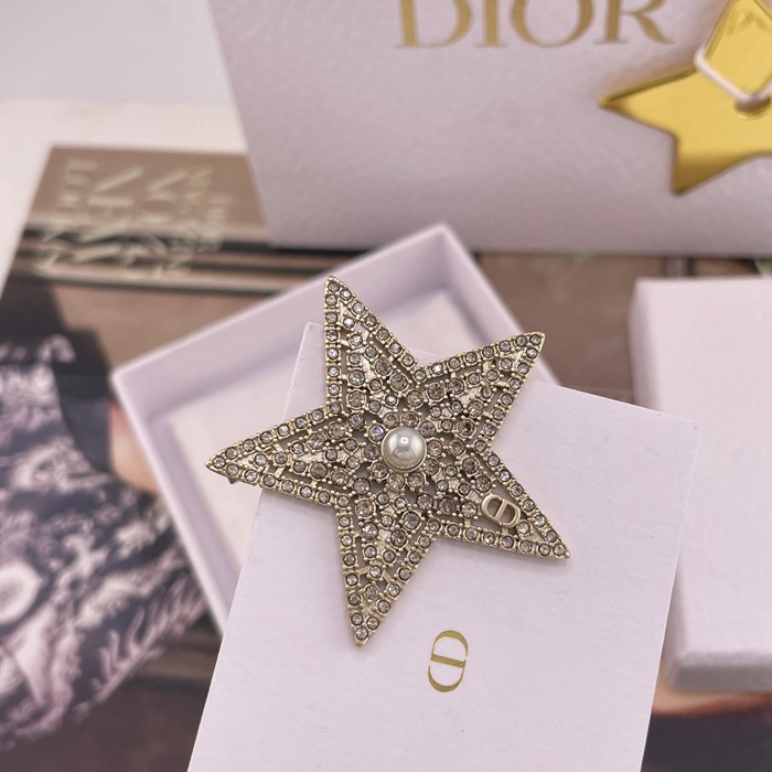 • ブローチ D 透かし星×鑽ネットブローチ — 26早春、淺金色の透かし星、パール×CD×シルバーシャドウダイヤ、財閥令嬢風仕上げ