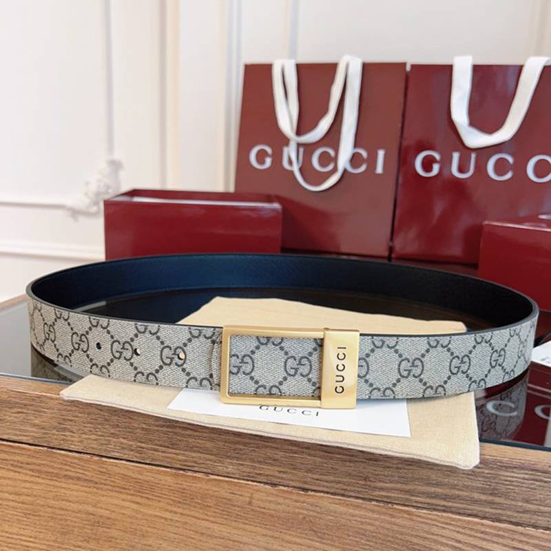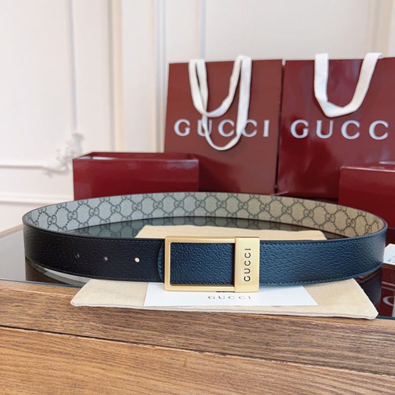 グッチ メンズ ベルト スクエアバックル 3.5cm