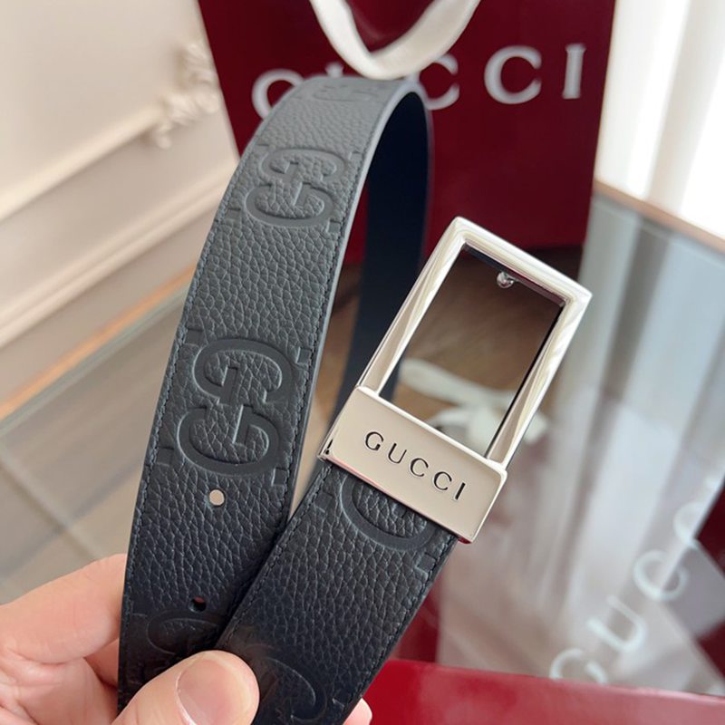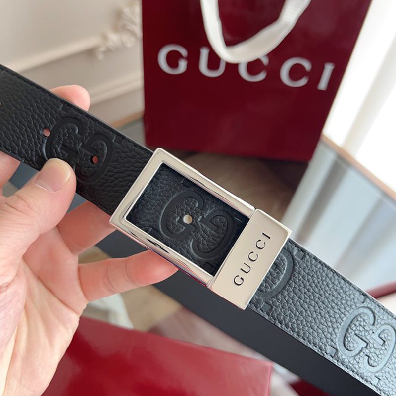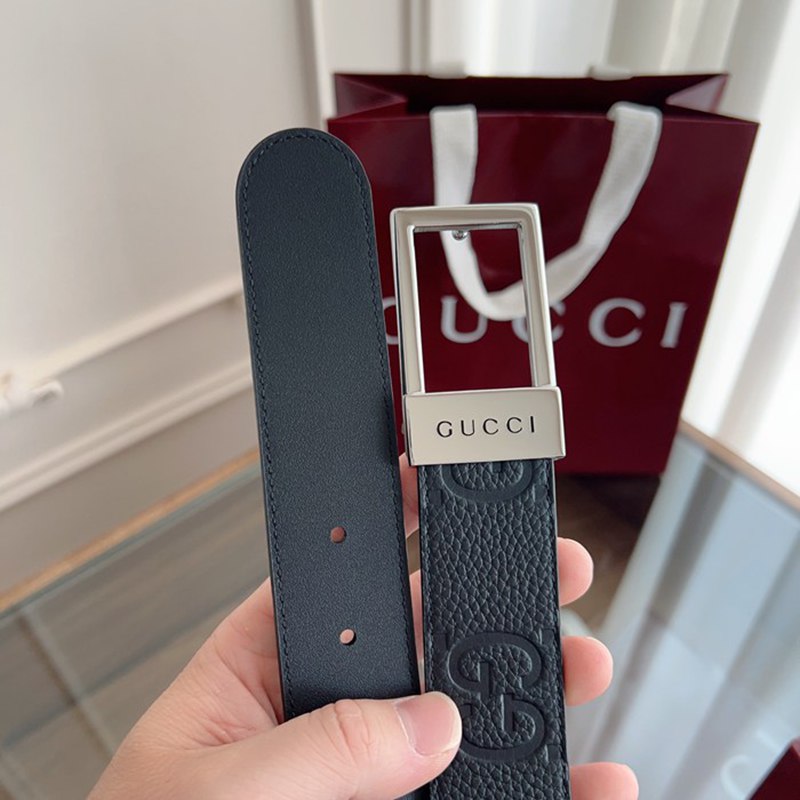 グッチ メンズ ベルト スクエアバックル 3.5cm
