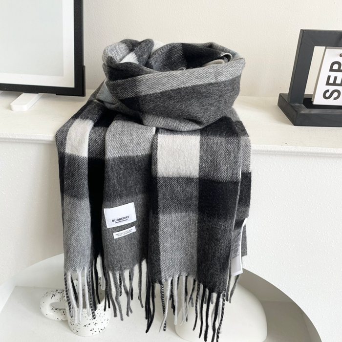 バーバリー 両面チェックカシミヤスカーフ 45x210cm