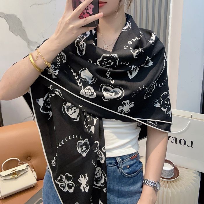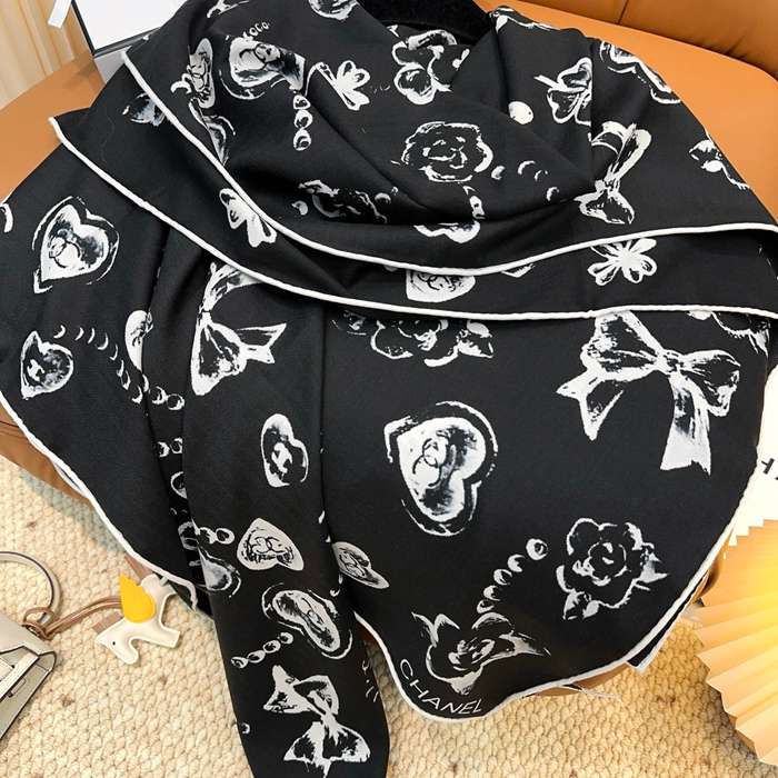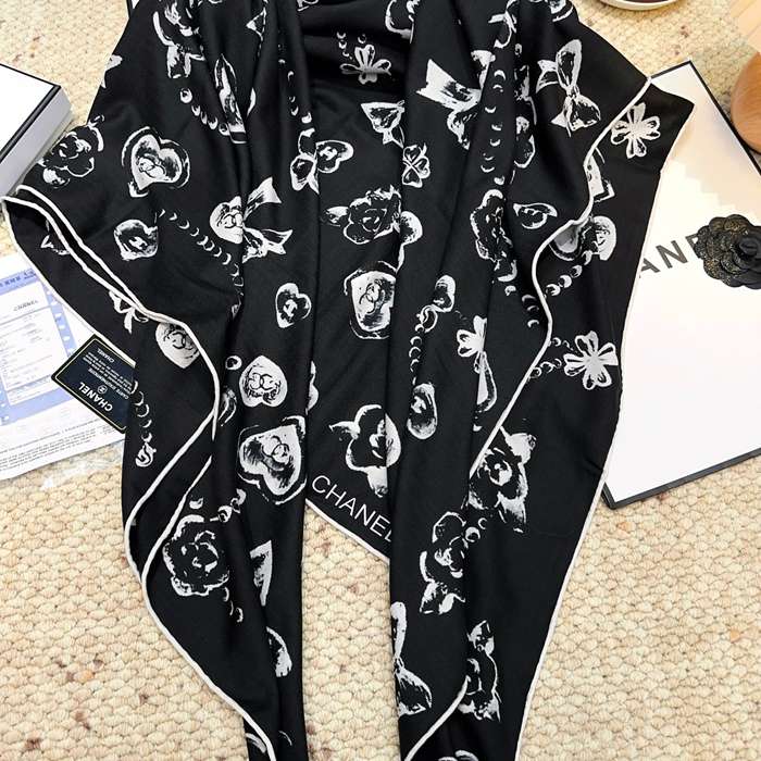 シャネル 140×140シルクベロアスカーフ 140x140cm