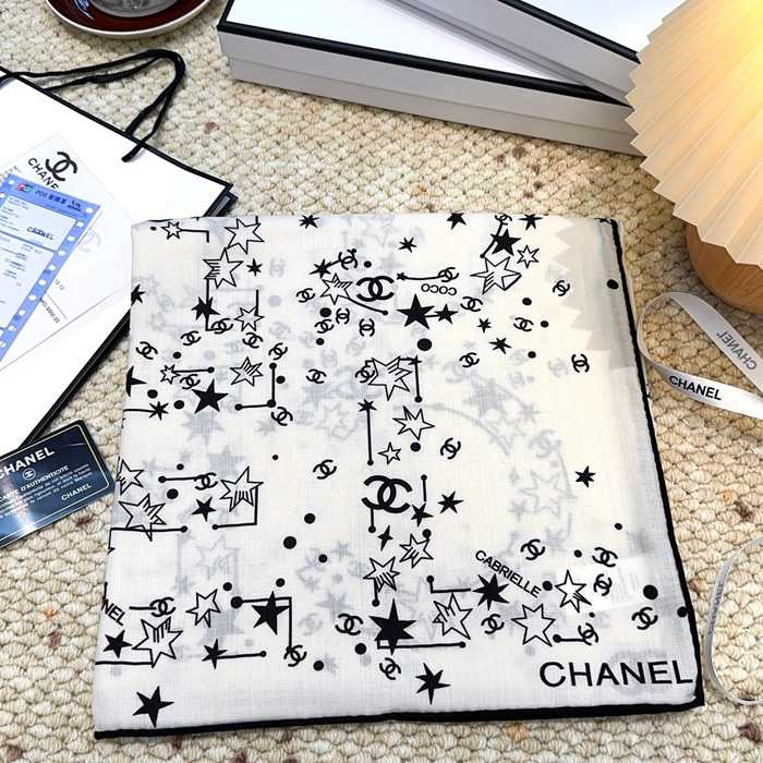 シャネル 140×140シルクベロアスカーフ 140x140cm