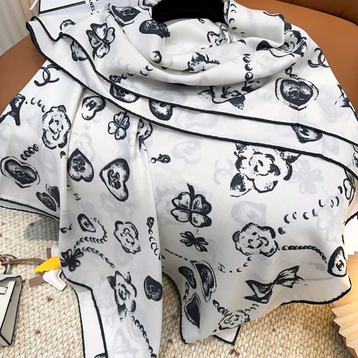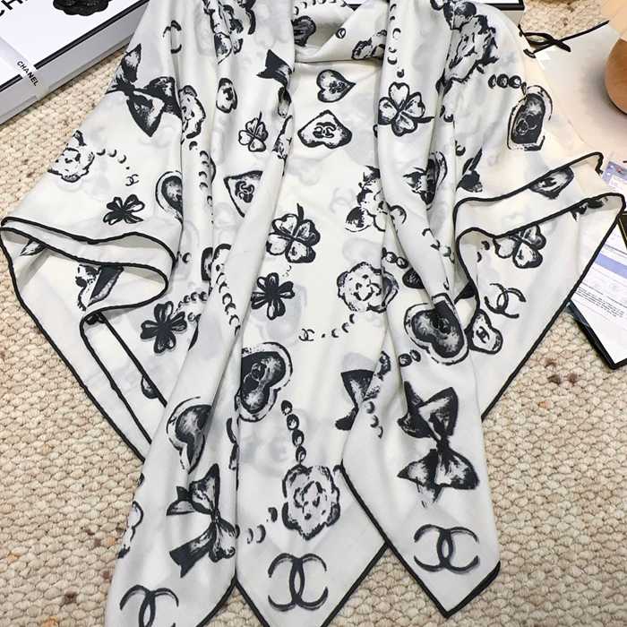 シャネル 140×140シルクベロアスカーフ 140x140cm