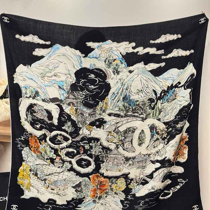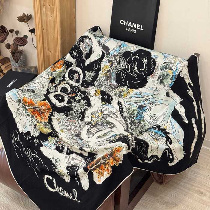 シャネル 25年オートクチュールコレクション。140cmプレミアムシルクベロア両面同色ストール 135x135cm