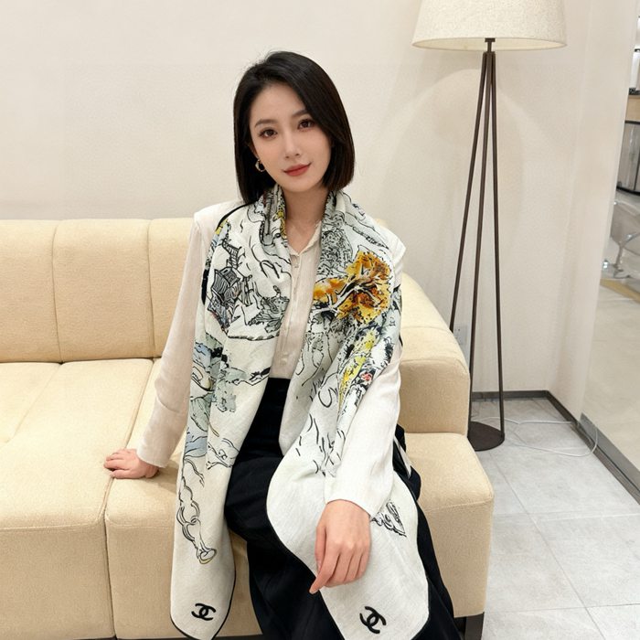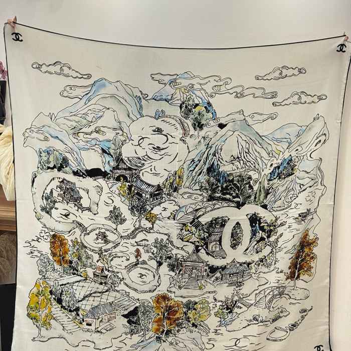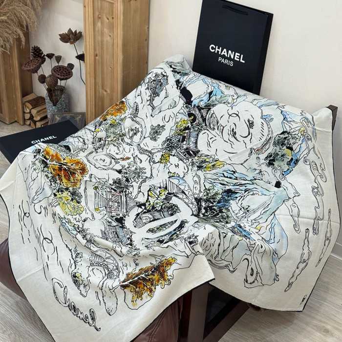 シャネル 25年オートクチュールコレクション。140cmプレミアムシルクベロア両面同色ストール 135x135cm
