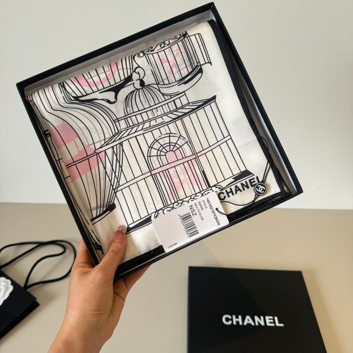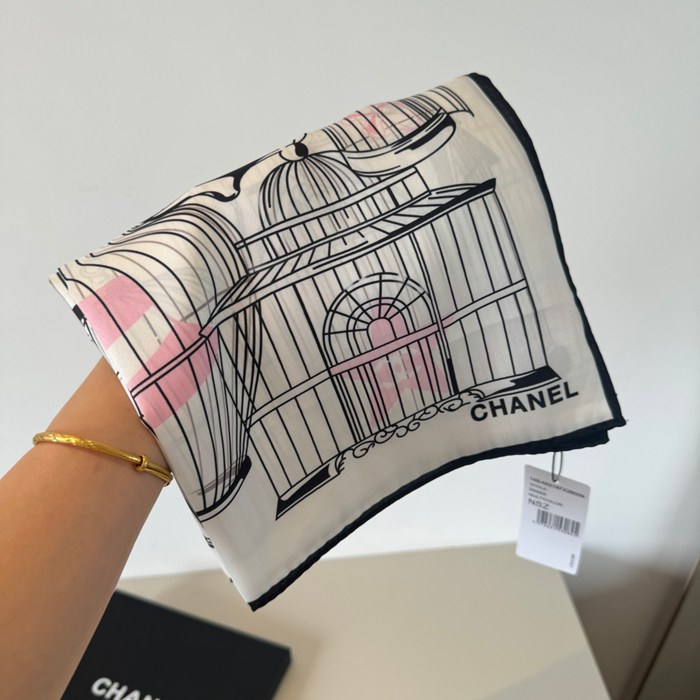 シャネル オリジナル90cmシルクスカーフ。鳥籠柄 90X90cm