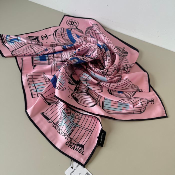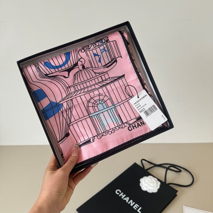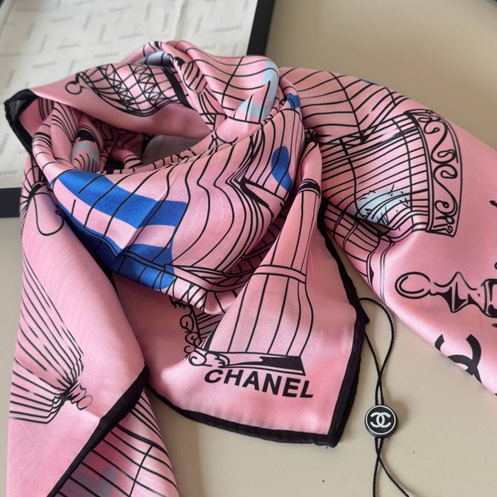 シャネル オリジナル90cmシルクスカーフ。鳥籠柄。100%シルク 90X90cm