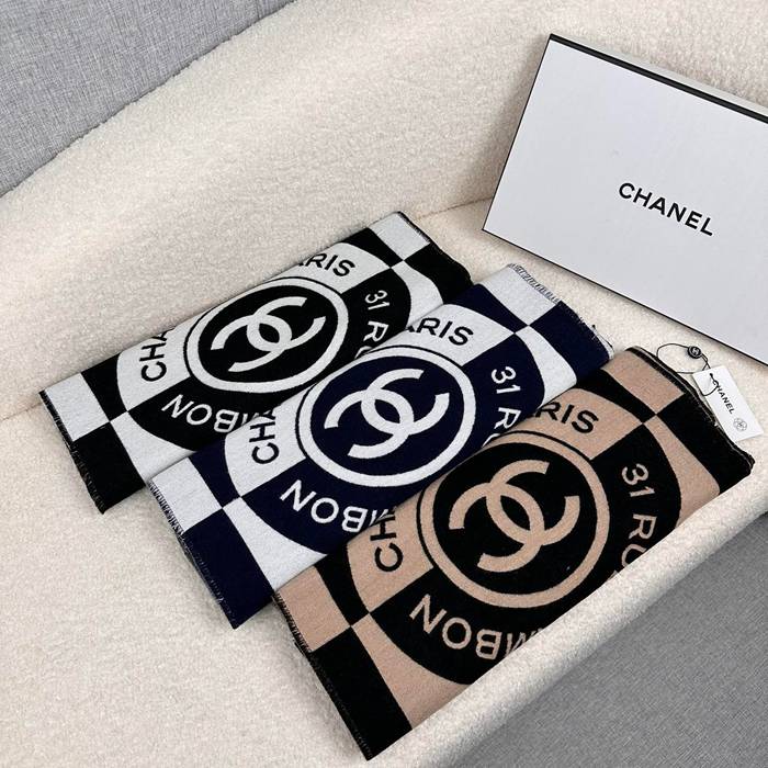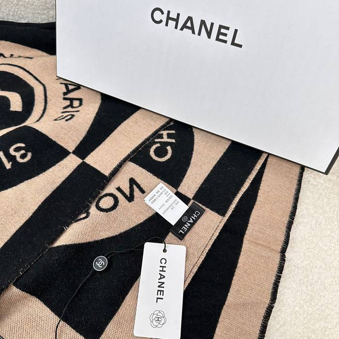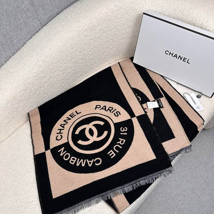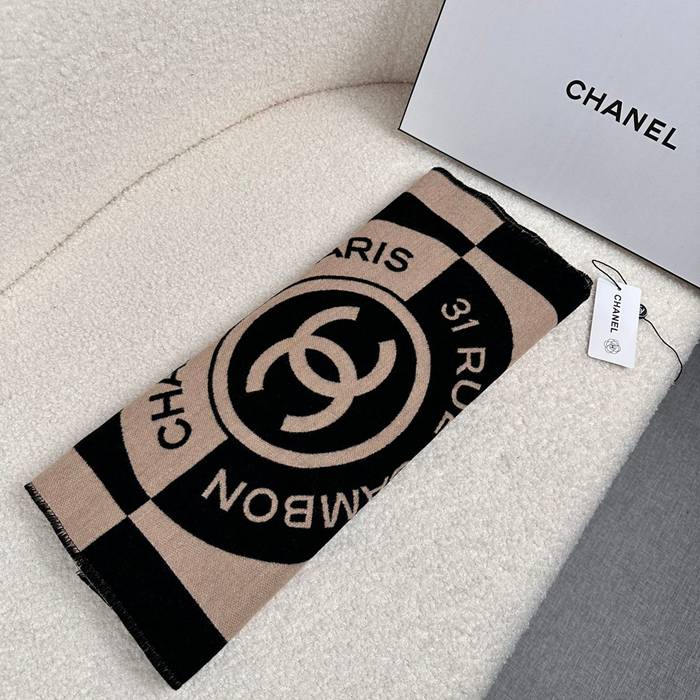 シャネル 黒杏色 両面カシミヤスカーフ 190x40cm