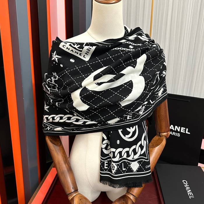 シャネル 新作 両面同色 ラクガキスカーフ 65x185