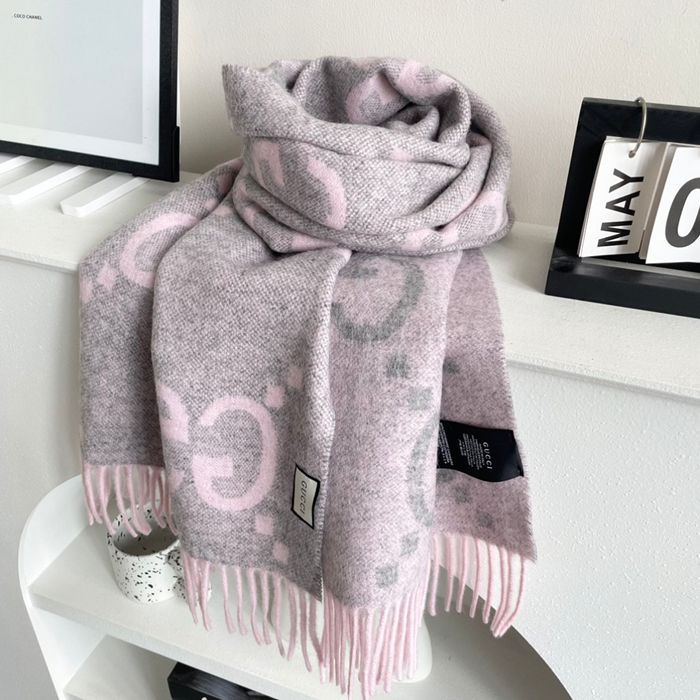 • グッチ 2025新作。両面カシミヤ 35x190cm