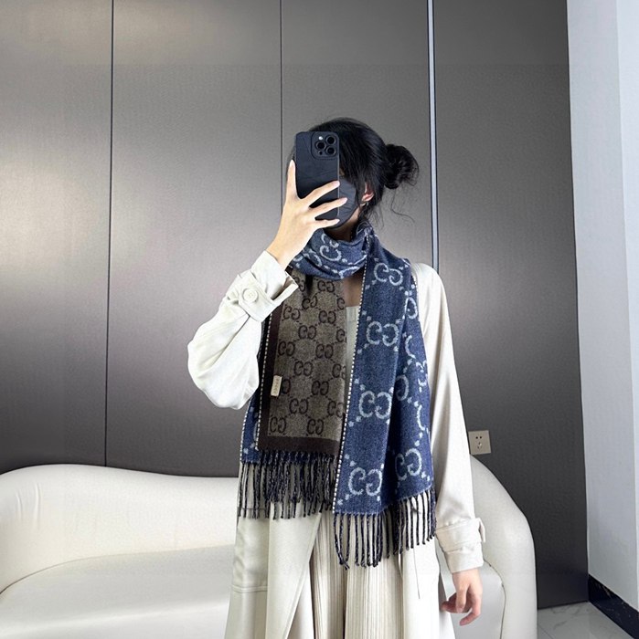 グッチ 両面GG提花スカーフ 34x194cm