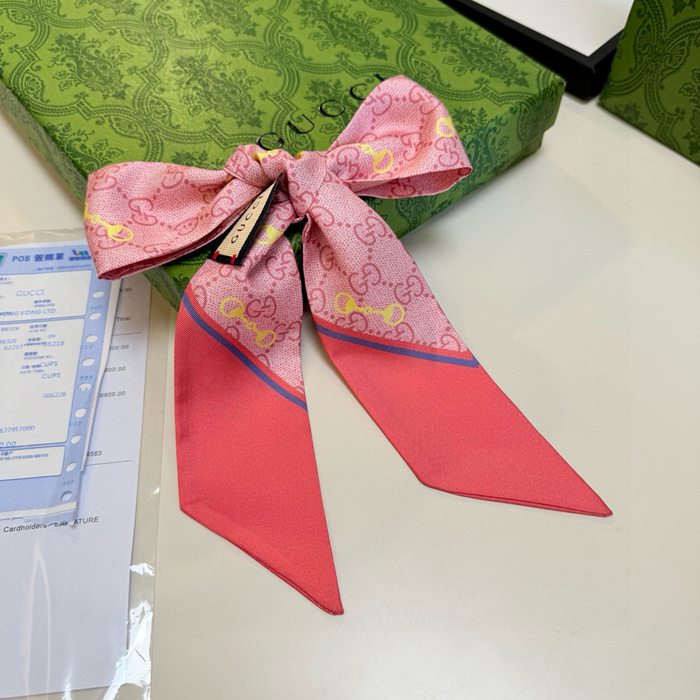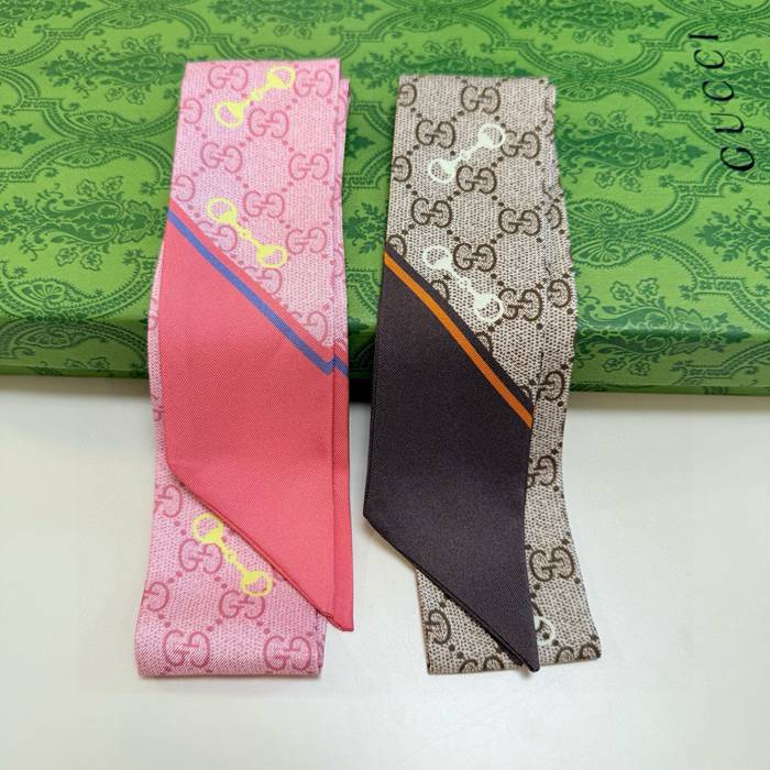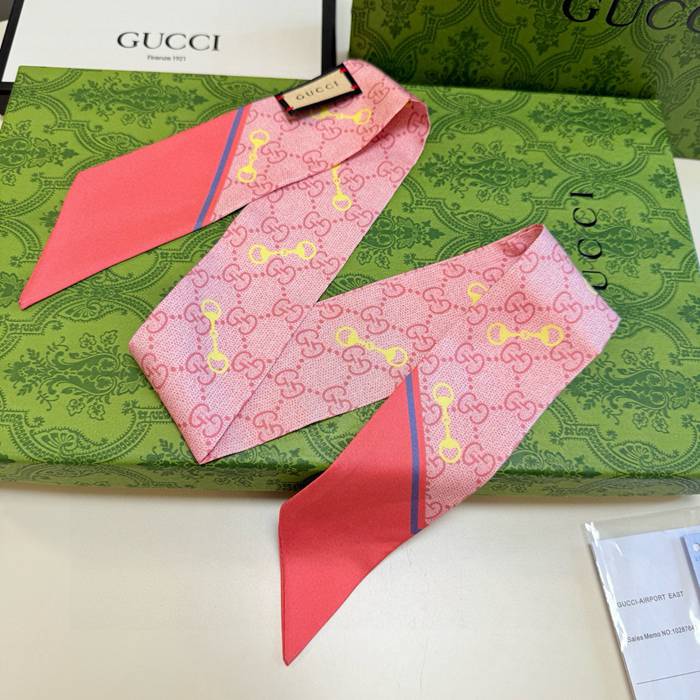 グッチ 馬銜口モチーフ。GGロゴ。ツイリーシルクスカーフ。両面100%シルク 5X86cm