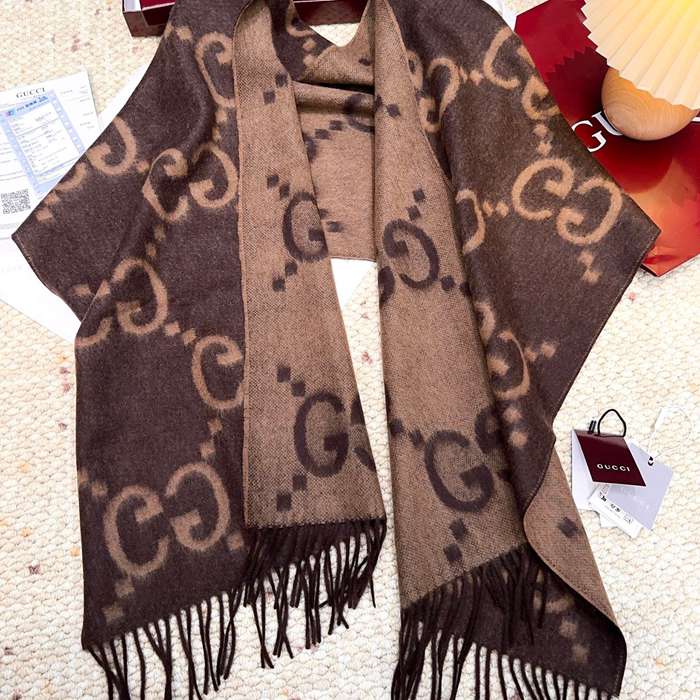 グッチ 新作 大G両面カシミヤスカーフ。100%カシミヤ 45x200cm