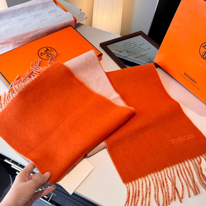 エルメス パリコレクション両面カシミヤスカーフ 180x30