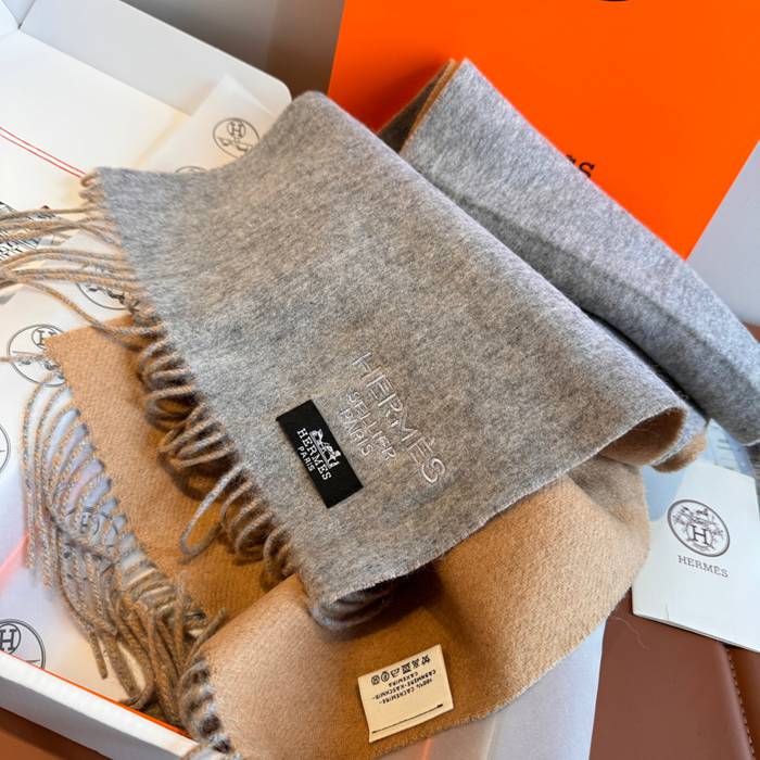 エルメス 両面ラムカシミヤスカーフ 30x180cm