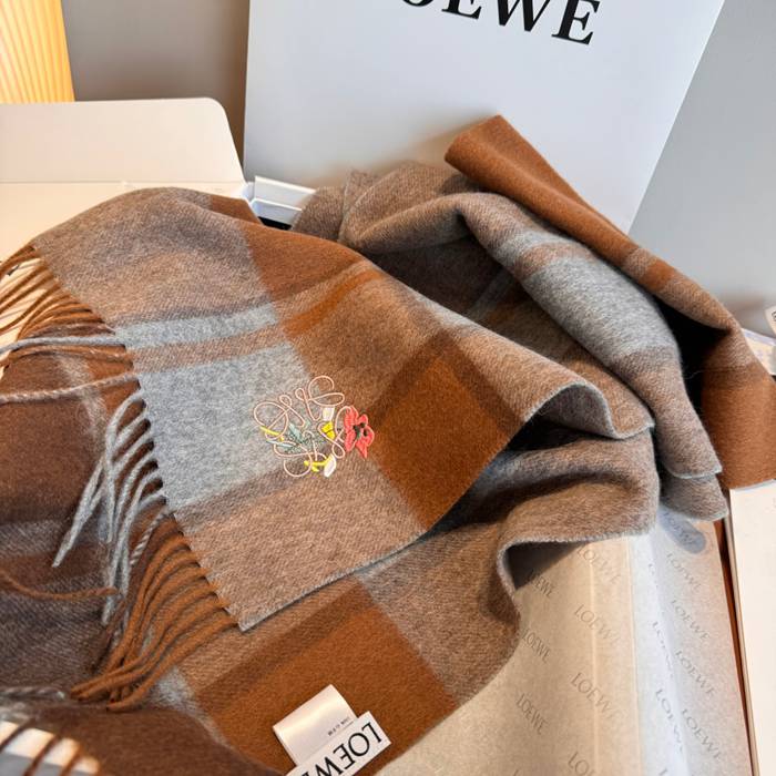 ロエベ めったに見ない優しい色合い。両面配色。カシミヤ 30 x 180cm