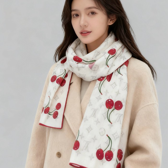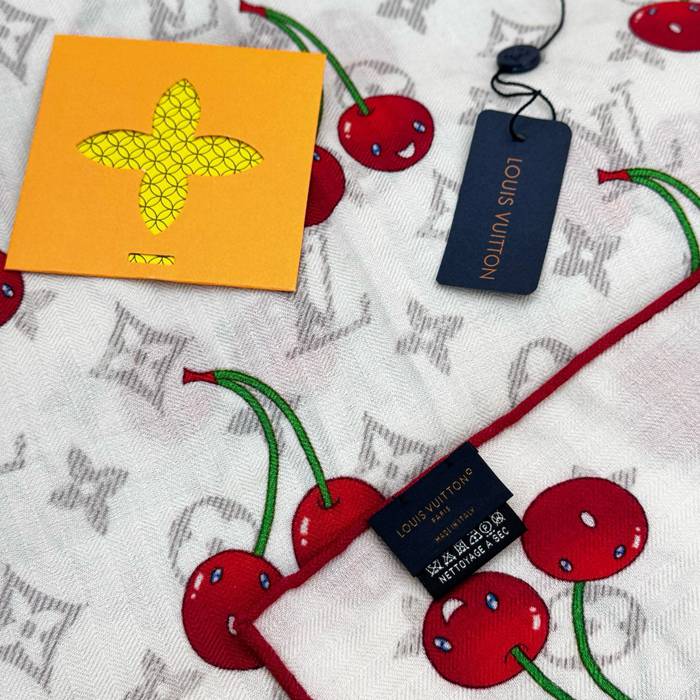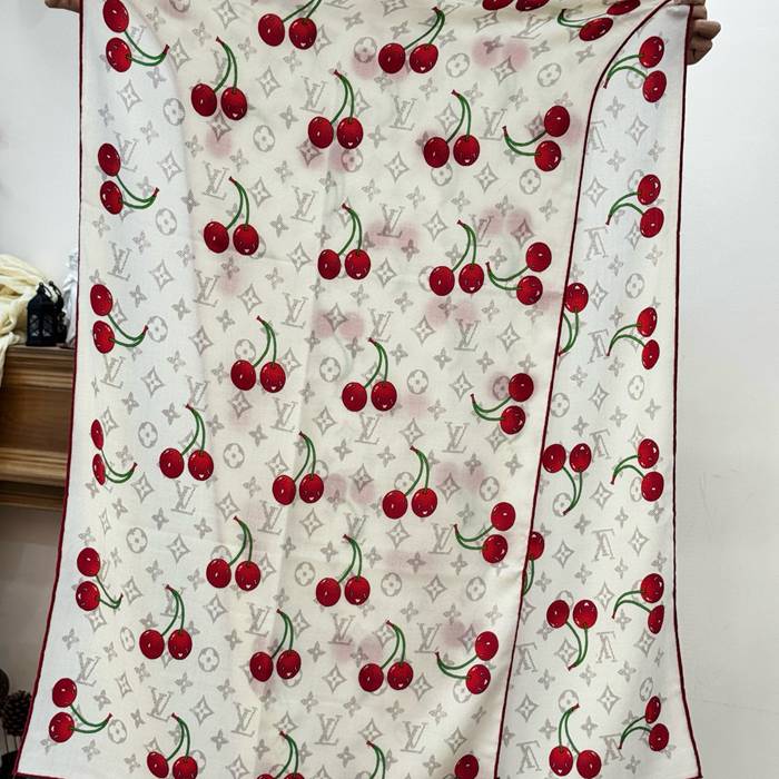 ルイ ヴィトン LV×TMモノグラムチェリー 両面シルクベロア同色スカーフ 60x180cm