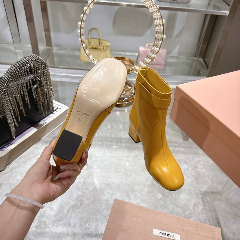 • 【MIUMIU】ショートブーツレザーブーツヒールブーツレディース