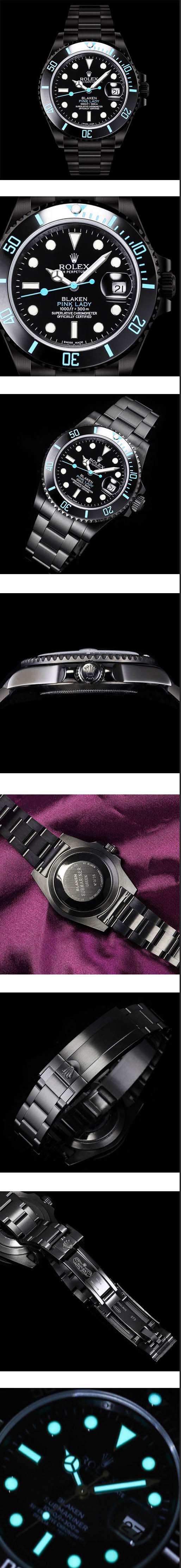 文字盤 : 黒文字盤、日付表示、ROLEX&王冠のルーレット刻印、スーパールミナンス(夜光)