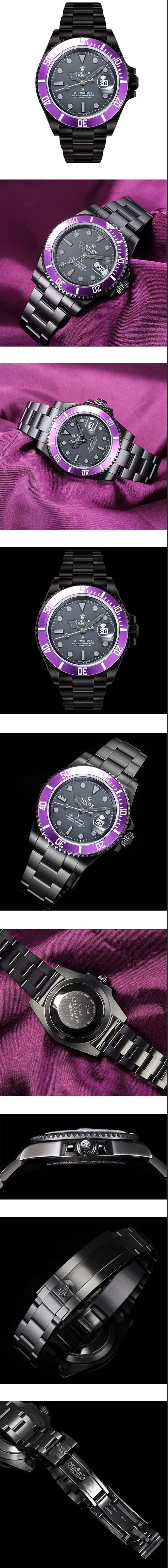 ベゼル : パープル双方向回転ベゼル、12時位置に夜光ビーズ付き
