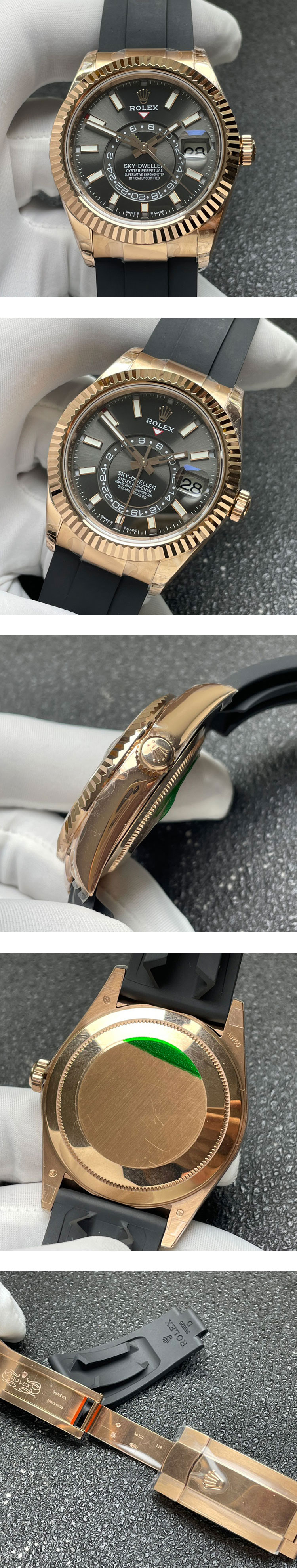 ベルト: 黒ラバーベルト(18K エバーローズ ゴールドDバックル搭載)