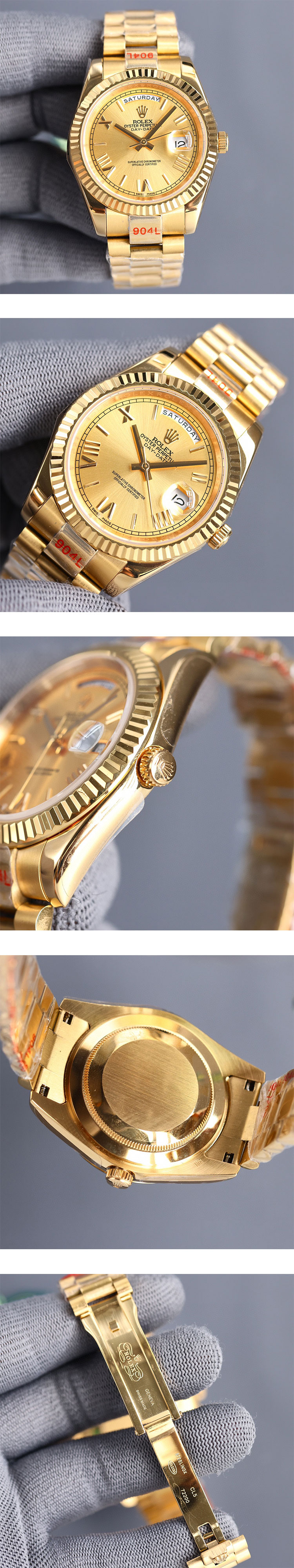 文字盤: シャンパン文字盤、ROLEX&王冠のルーレット刻印、2.5倍拡大率カレンダー表示