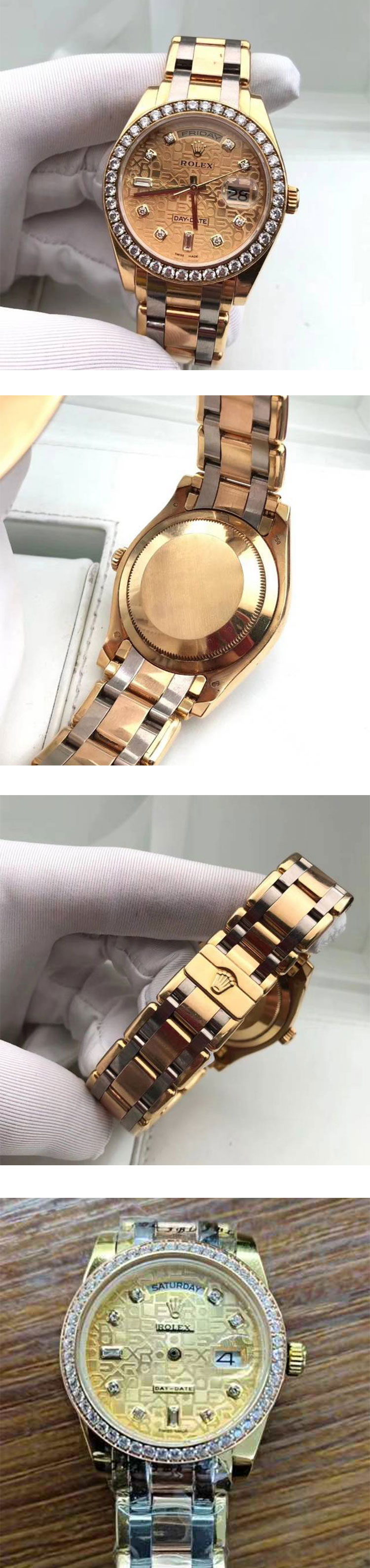 文字盤: ゴールド文字盤、バケットダイヤ10個、ROLEX&王冠のルーレット刻印ある