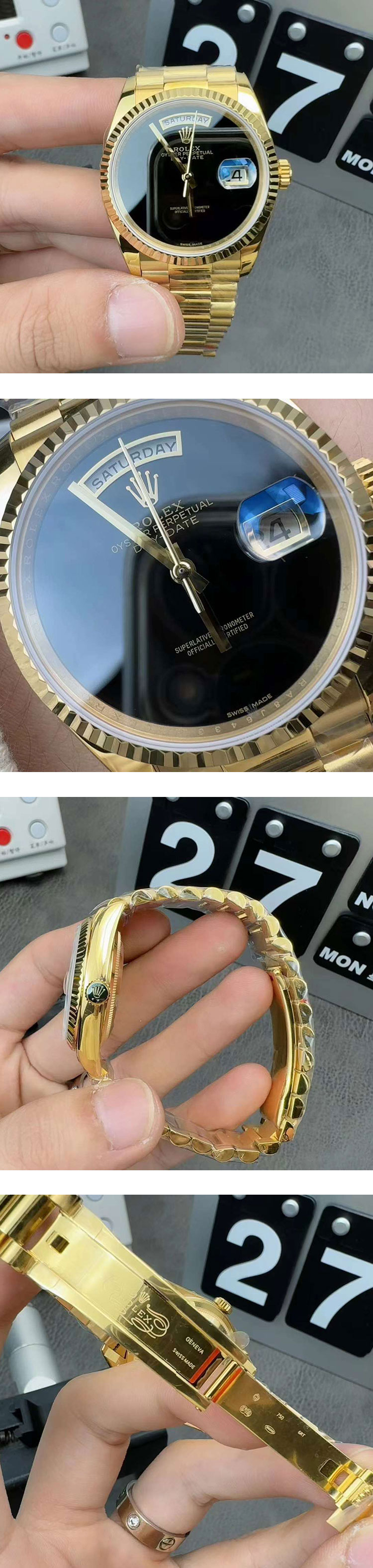文字盤: オニキス文字盤、曜日表示、デイト表示、ルーレット刻印(ROLEX文字&王冠)