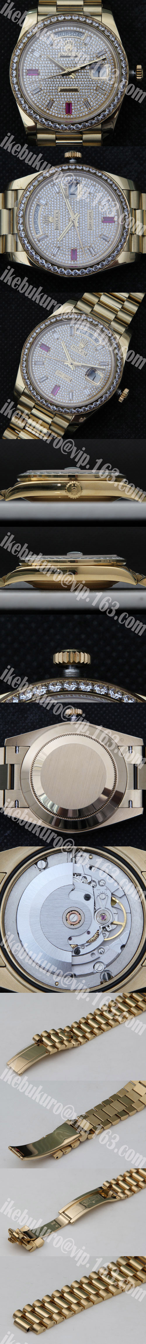 ダイヤル:全面ダイヤ、インデックス8個ダイヤ(6時と9時はルビー)、ルーレット刻印ある