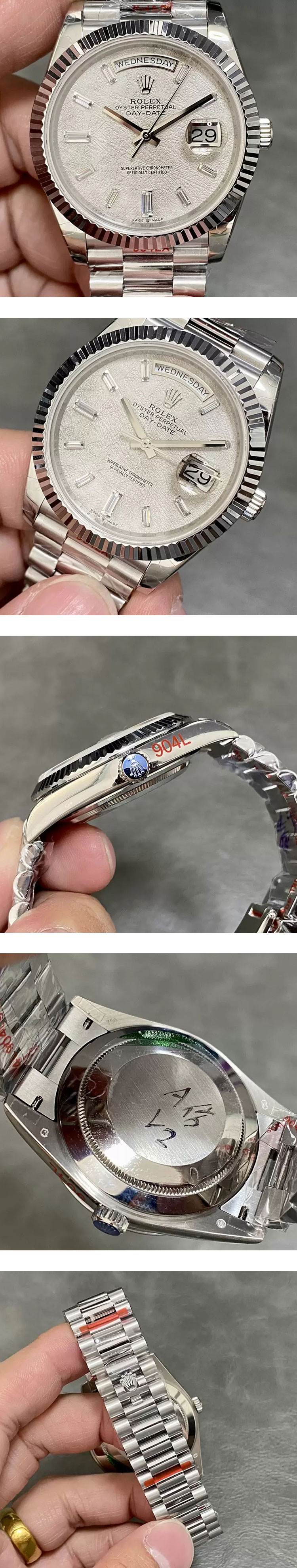 文字盤: メテオライト文字盤、曜日表示、デイト表示、ルーレット刻印(ROLEX文字&王冠)