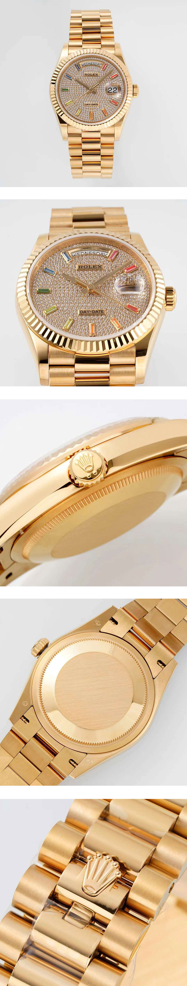 文字盤: 全面ダイヤ文字盤、曜日表示、デイト表示、ルーレット刻印(ROLEX文字&王冠)