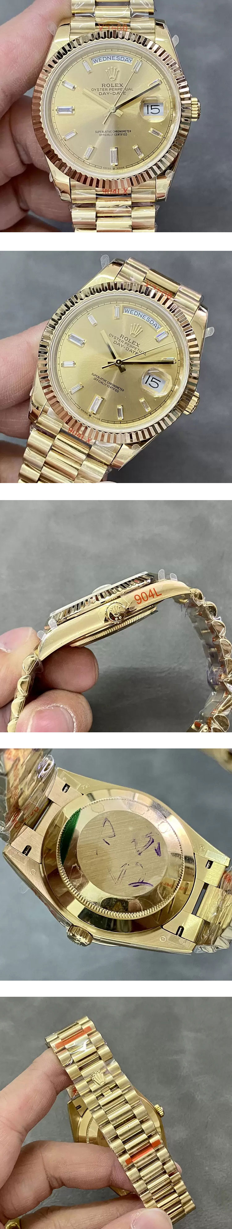 文字盤: シャンパン文字盤、曜日表示、デイト表示、ルーレット刻印(ROLEX文字&王冠)