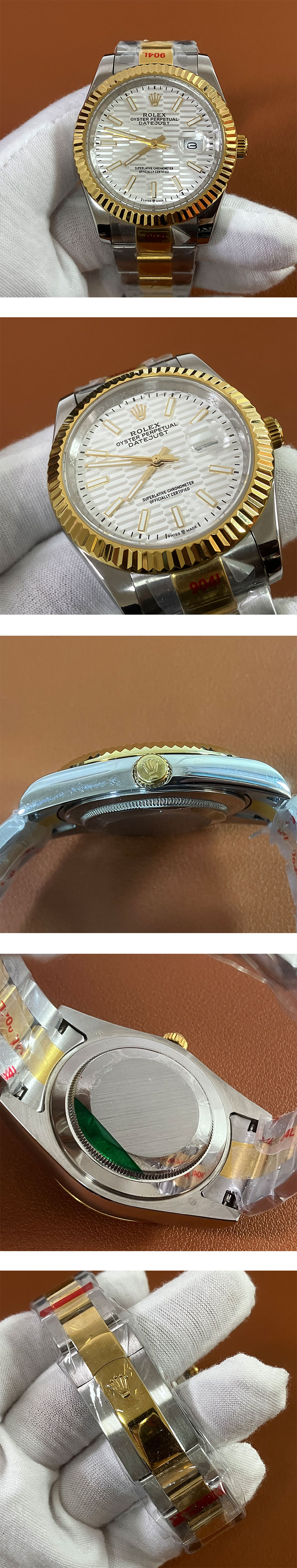 文字盤: グレー デンフルーテッド文字盤、ROLEX&王冠のルーレット刻印、2.5倍拡大率カレンダー表示