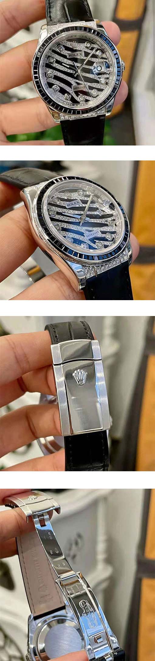 文字盤 : 人工ダイヤ文字盤、ルーレット刻印(ROLEX&王冠)、デイト表示、バケットダイヤ10個