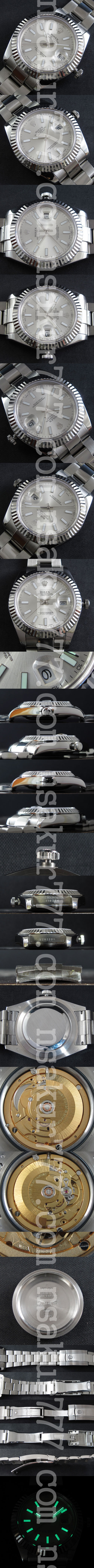 文字盤: シルバー文字盤、3時位置デイト表示(2.5倍拡大率)、スーパールミナスインデックス(夜光)