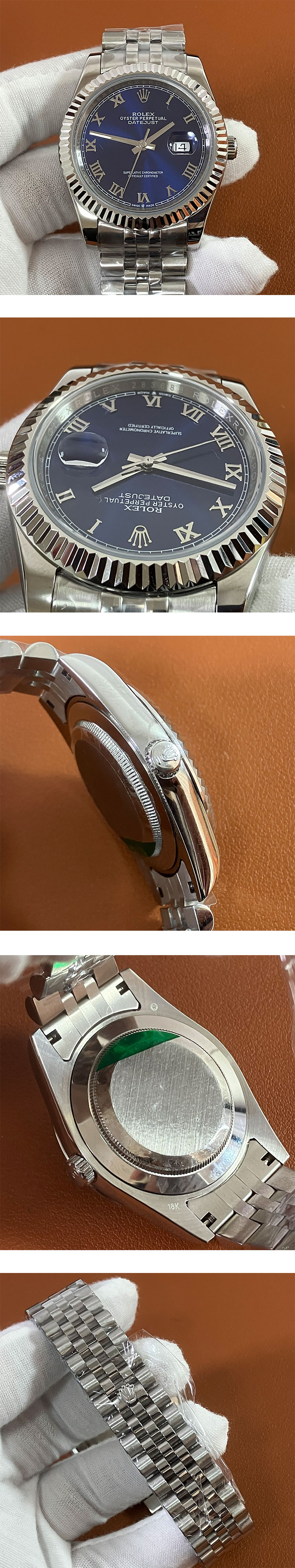 文字盤: ブルー文字盤、ローマ数字インデックス、ROLEX&王冠のルーレット刻印ある