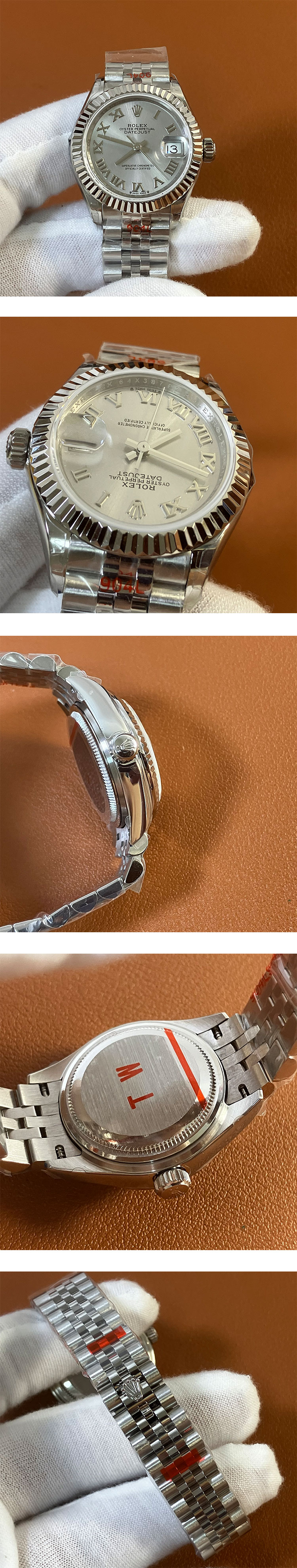 文字盤: シルバー文字盤、ローマ数字インデックス、ROLEX&王冠のルーレット刻印ある