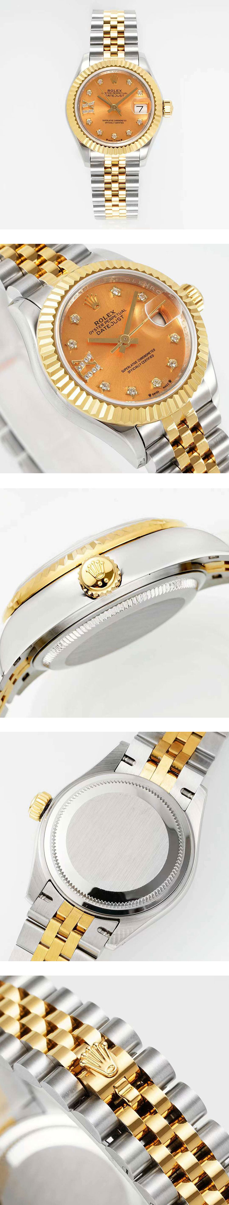 文字盘: シャンパン スターIXダイヤ文字盤、デイト拡大率2.5倍、ROLEX王冠ルーレット刻印ある